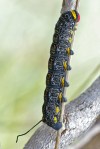 Larvae have long tails; colouration suggests they are unpalatable to birds.